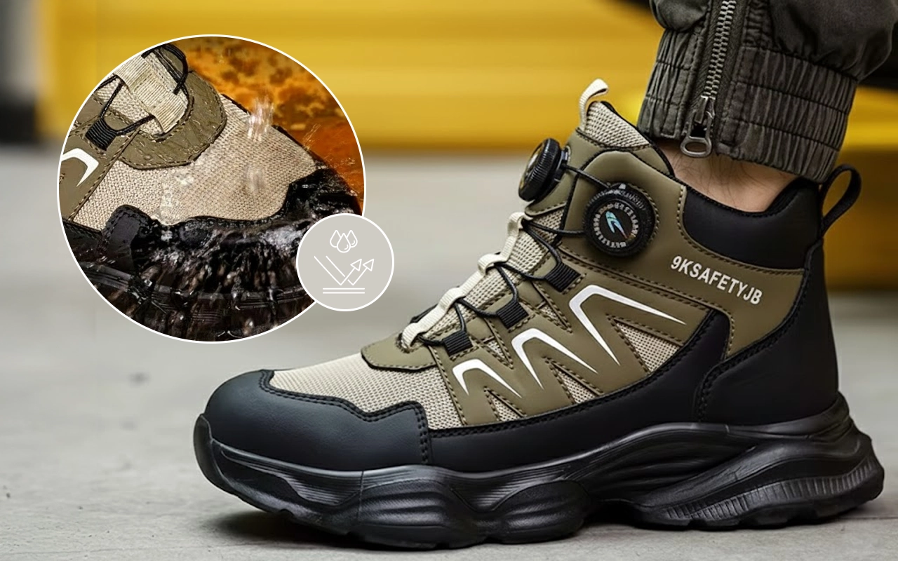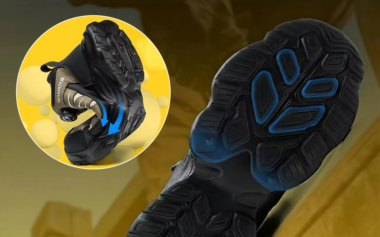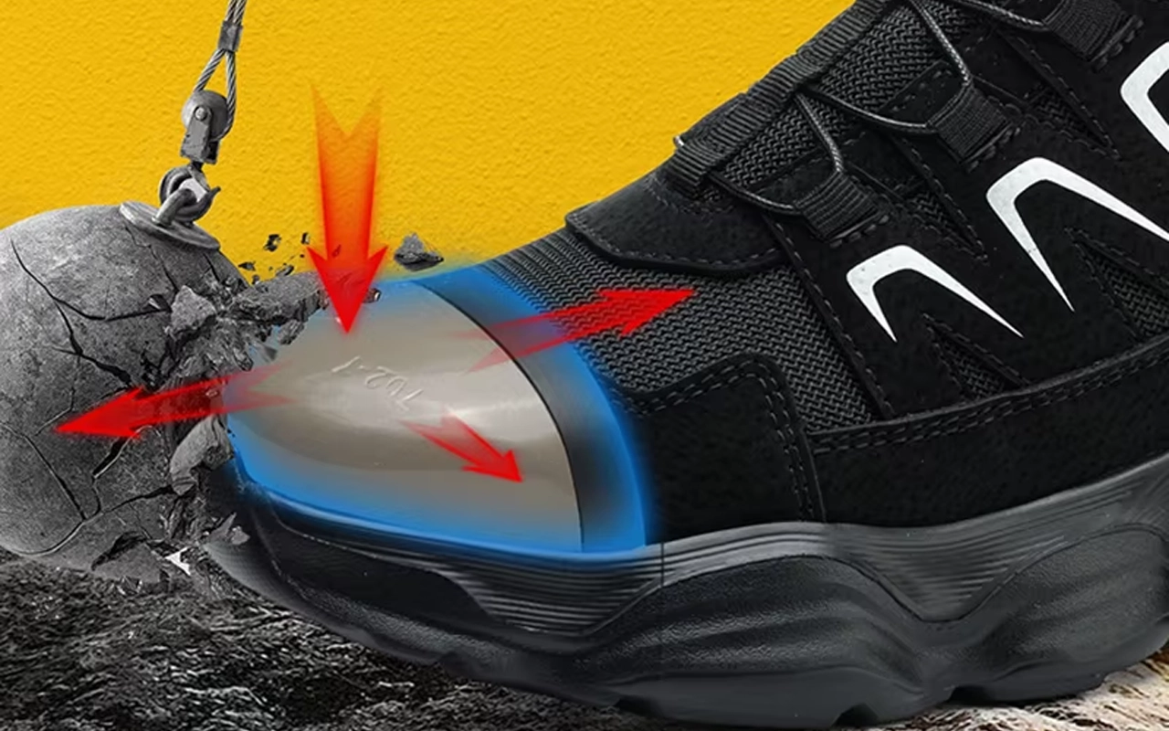 Teräsvahvike suojaa varpaita putoavilta työkaluilta tai roskilta. Pistonkestävä pohja estää teräviä esineitä läpäisemästä jalkaasi.