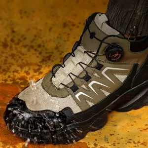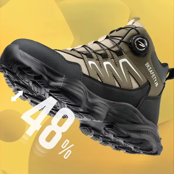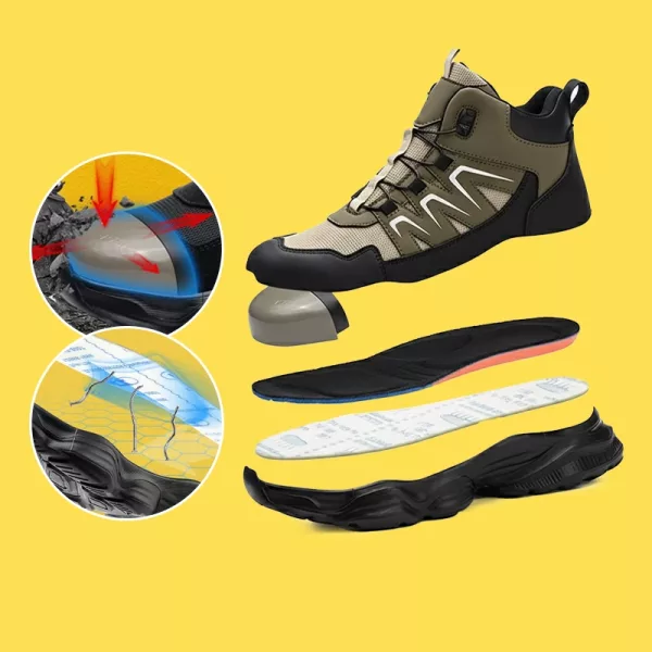 Teräsvahvike suojaa varpaita putoavilta työkaluilta tai roskilta. Pistonkestävä pohja estää teräviä esineitä läpäisemästä jalkaasi.