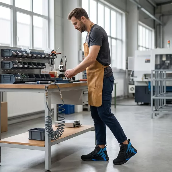 Työskentelen kiireisellä autokorjaamolla ja tarvitsin jotain kestävää, mutta en raskaita saappaita. Nämä lenkkarit pitävät jalat viileinä, teräskärjet tuntuvat turvallisilta ja pohjat pitävät öljyläikillä.