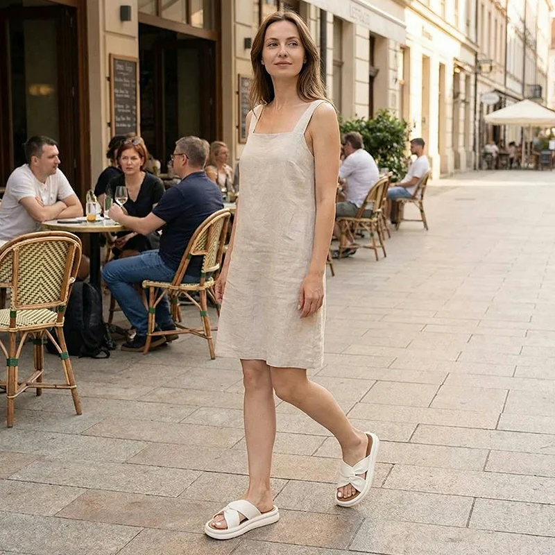 Minulla on herkät jalat, mutta nämä sandaalit tuntuvat lempeiltä ja tukevilta. Remmit eivät paina, ja solmittu päällinen saa jopa yksinkertaiset asut näyttämään huolitelluilta.