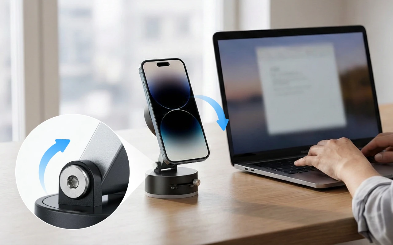 Säädä kulmaa helposti lukemiseen, ruoanlaittoon tai videopuheluihin missä tahansa. Valitse täydellinen näkymä ilman vaivaa tai ylimääräistä ponnistelua.