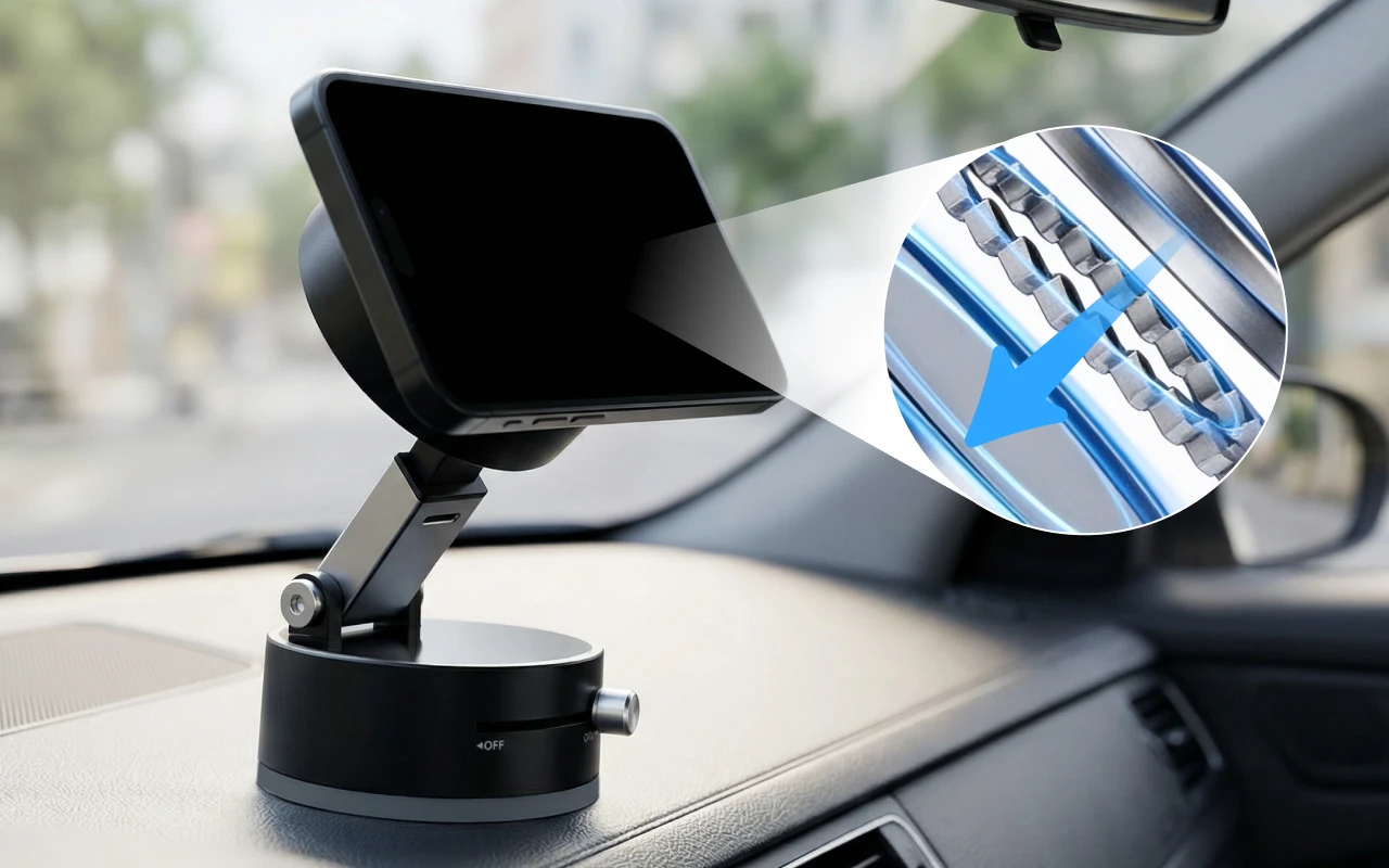 Tehokkaat magneetit pitävät puhelimesi tukevasti paikoillaan aina. Ei tärinää tai liukumista, vaikka pinta olisi epätasainen.