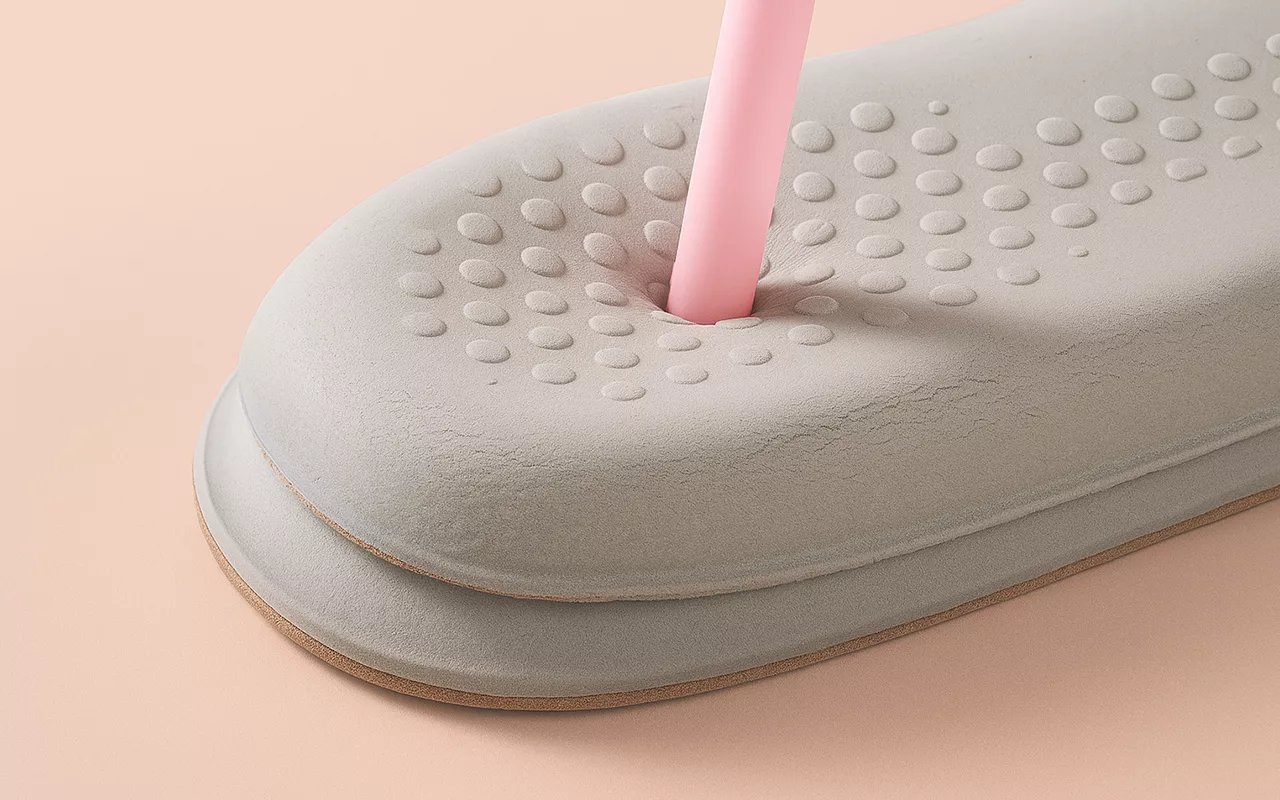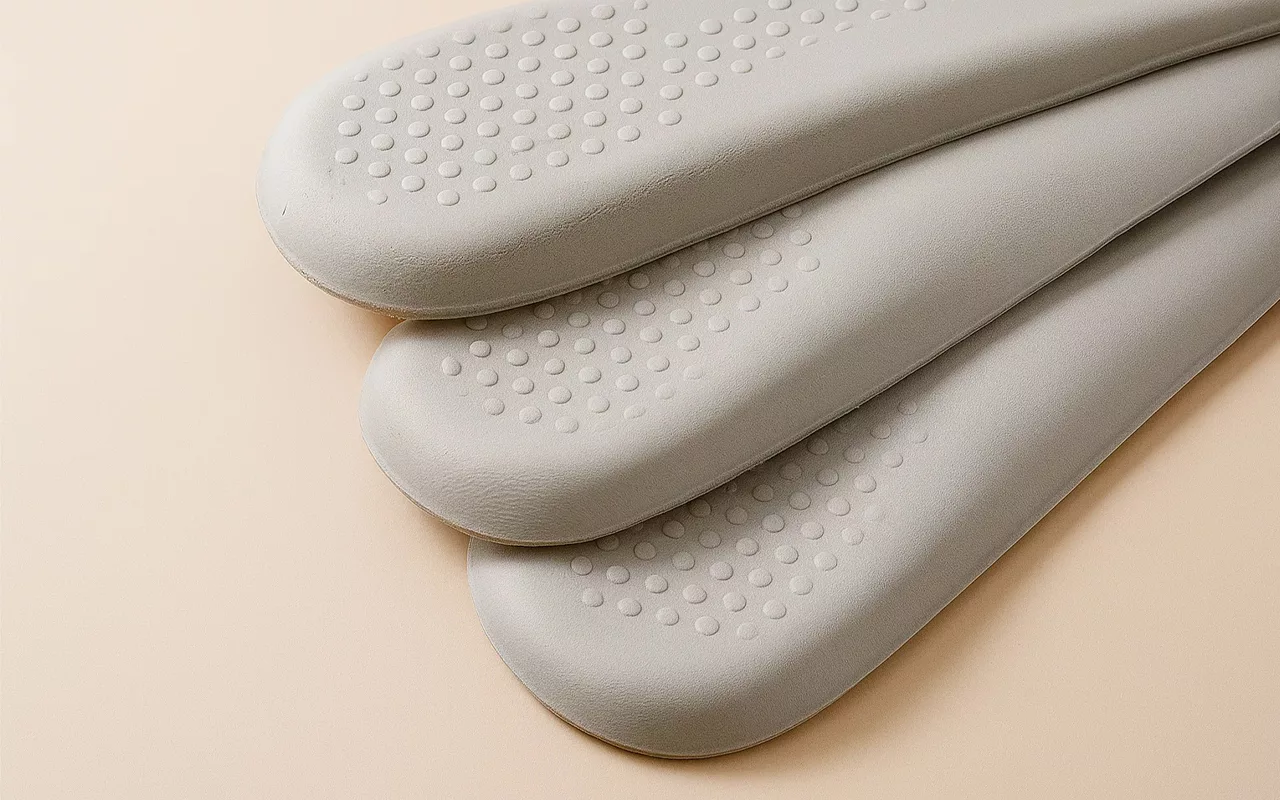Pohjan pitävä pinta pitää pohjallisen tukevasti paikoillaan kengässäsi. Se estää pohjallisen liukumisen kävellessä, tarjoten tasaista mukavuutta ja tukea.