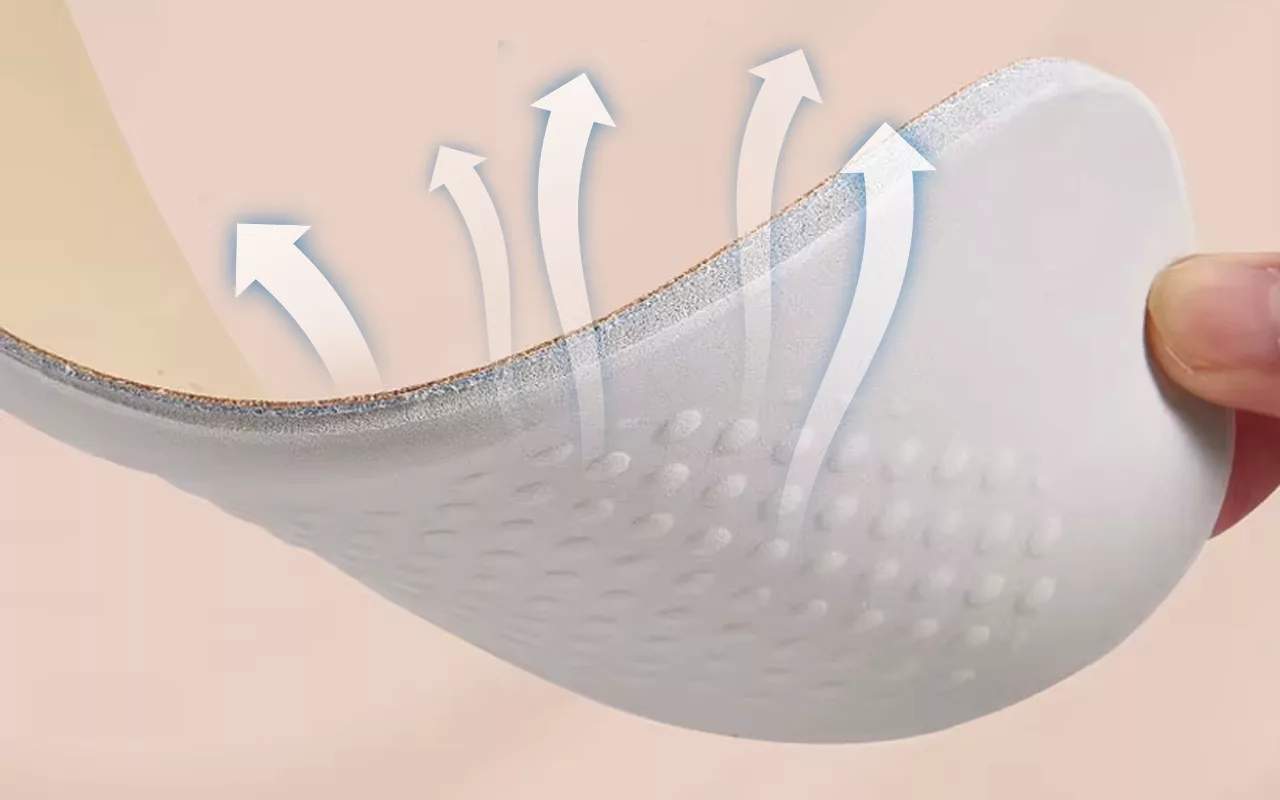 Useat pehmustetut kerrokset muodostavat pehmeän esteen jalkasi ja lattian välille. Ne vähentävät painetta kantapäissä ja varpaissa, ehkäisten väsymystä pitkän seisomisen tai kävelyn jälkeen.