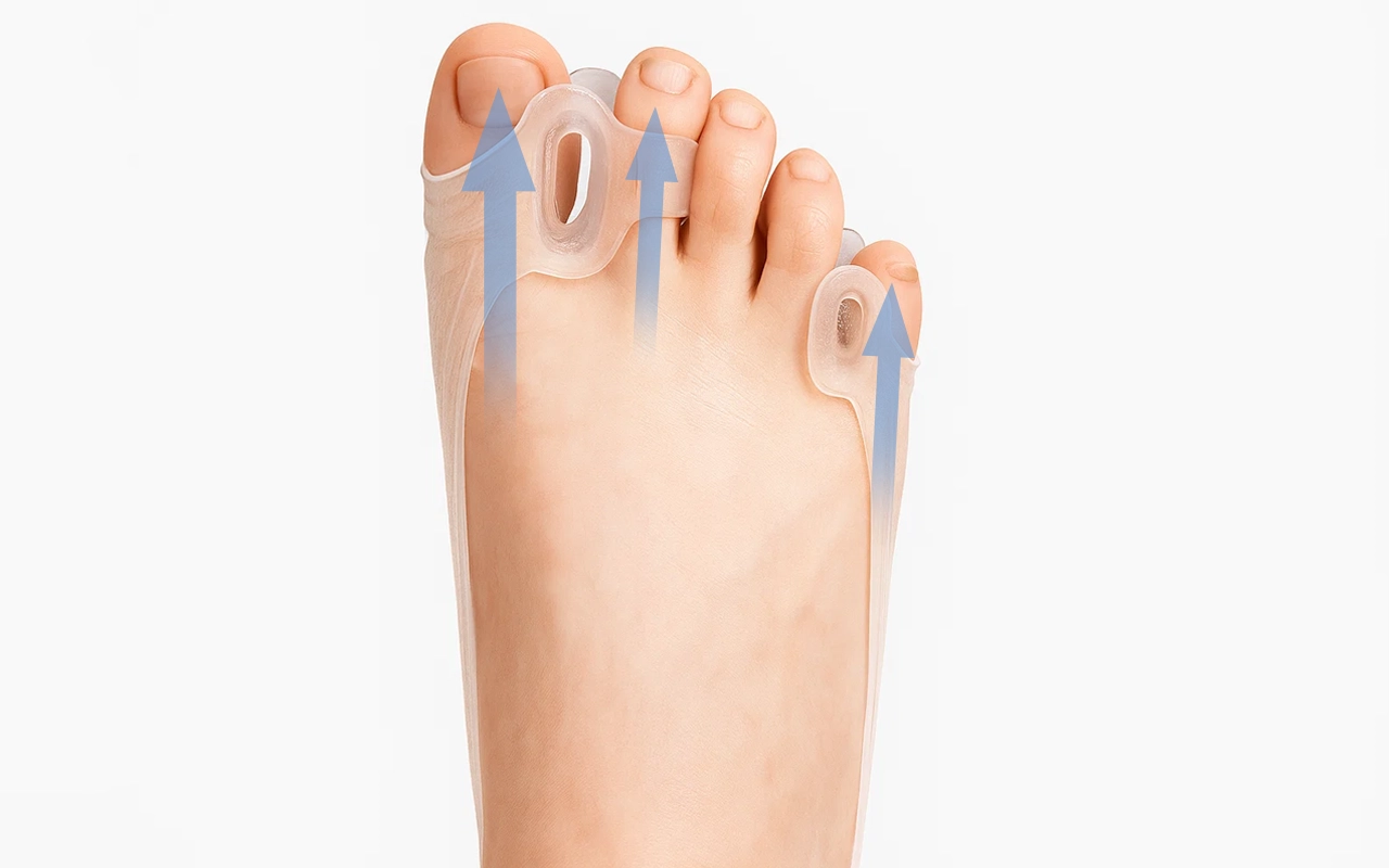 Auttaa suoristamaan varpaita aiheuttamatta epämukavuutta tai rasitusta. Pitää jokaisen nivelen vakaana, jotta liike tuntuu sulavalta.