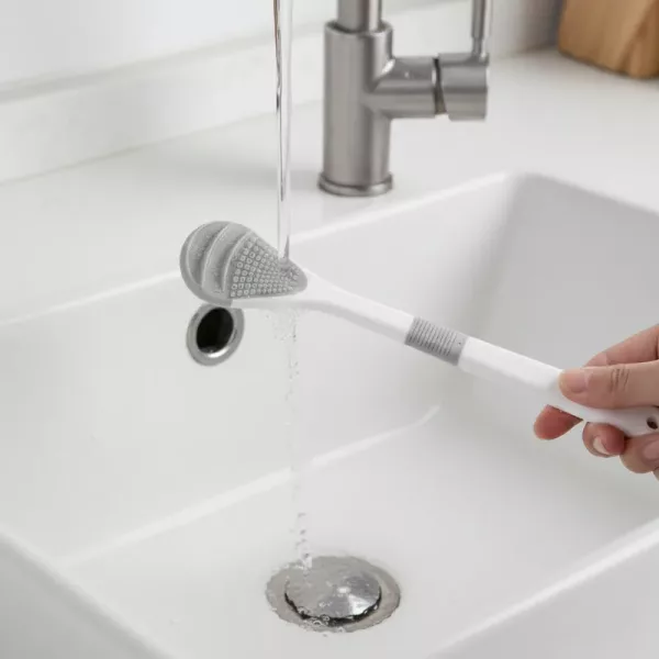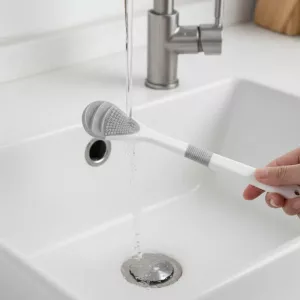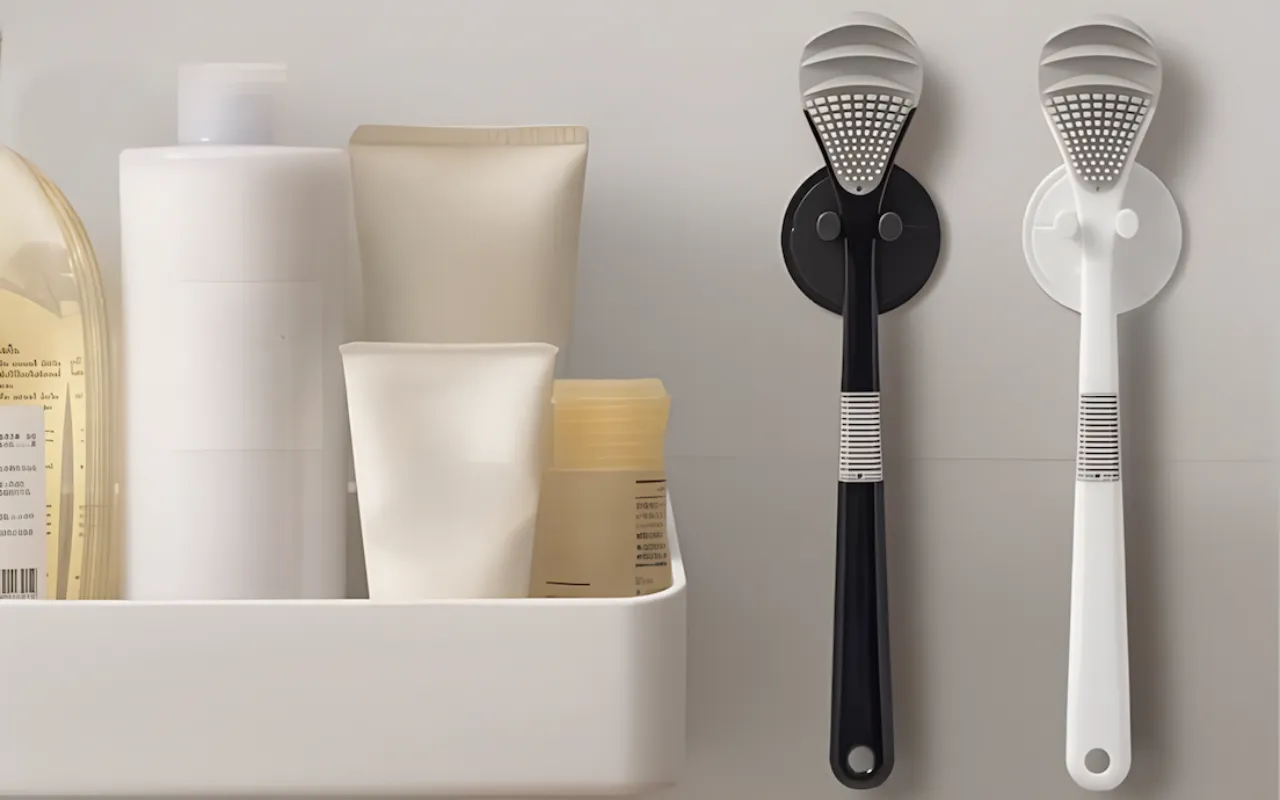 Pidän sitä seinällä kylpyhuoneessa ja se on aina kuiva ja käyttövalmis. Ote on hyvä eikä harja lipsu käsistä.