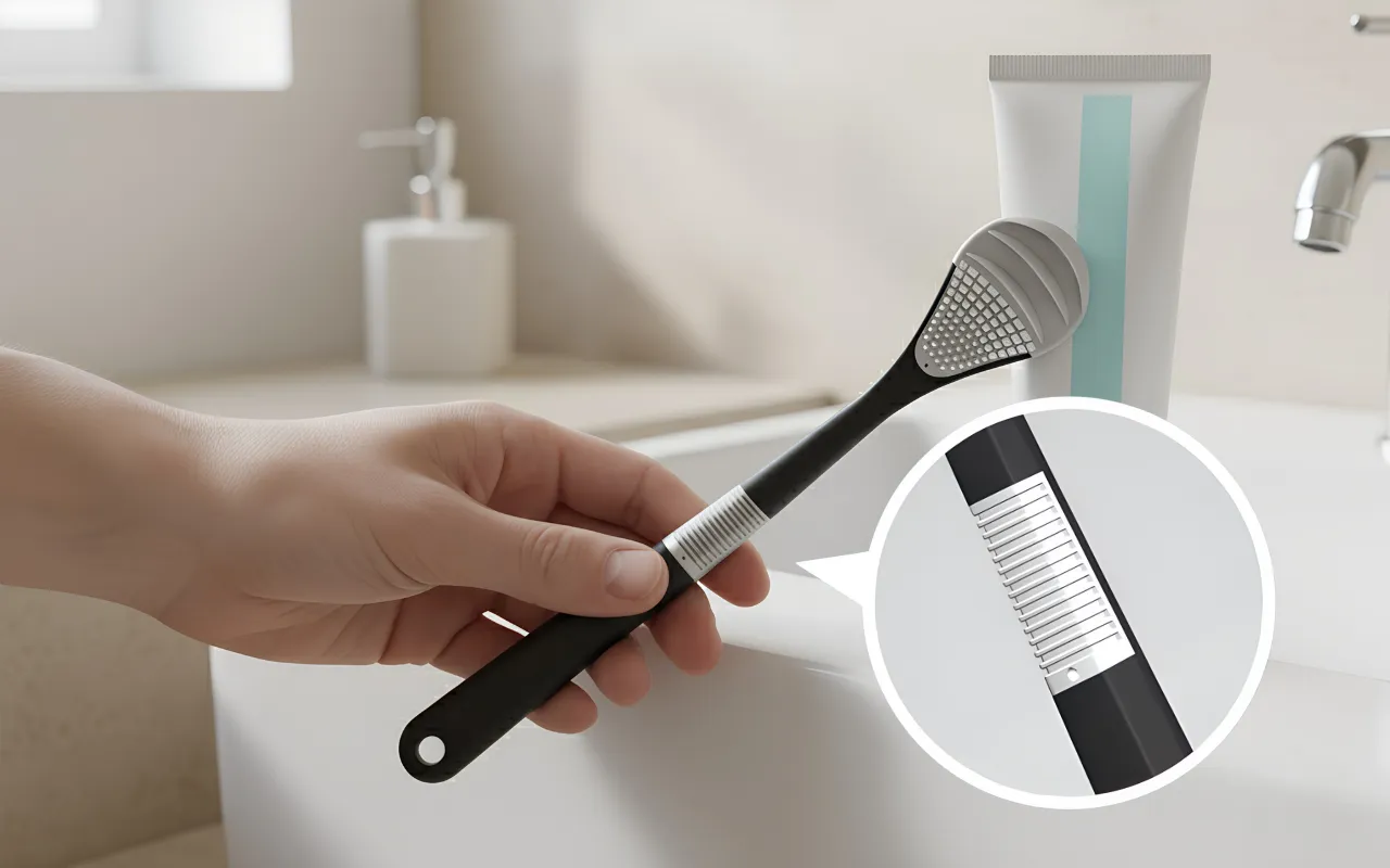 Ei enää ikävänhajuista hengitystä aamulla! Käytän tätä kieliharjaa ennen hampaiden pesua ja ero on huomattava.