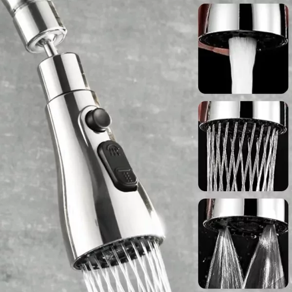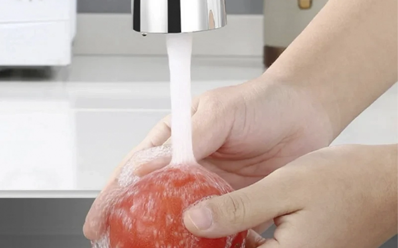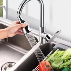 Erinomainen riisin huuhteluun, salaatin pesuun ja korkeiden kannujen täyttöön. Ilmastin tekee virrasta todella tasaisen eikä roisketta tule.