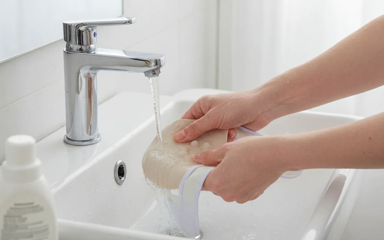 Käytän tätä silikoninauhaa kasvojen pesun jälkeen. Se pysyy paikallaan, tukee leukalinjaa ja antaa miellyttävän napakan tunteen jättämättä jälkiä.