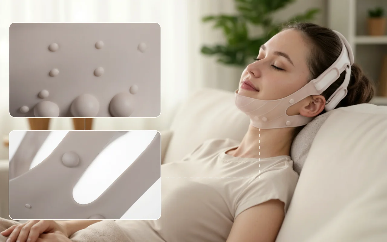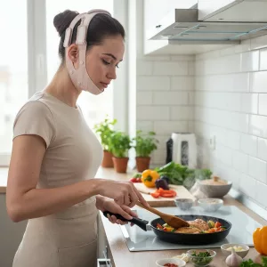 Käytän tätä kohottavaa pantaa lukiessani iltaisin, ja leukalinjani näyttää jo terävämmältä. Pehmeää silikonia, ei purista, ja poskeni tuntuvat napakammilta.