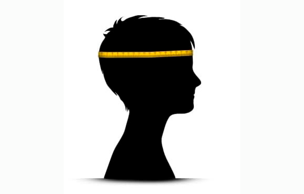 - 1. Kiedo mittanauha pään leveimmän kohdan ympäri, juuri kulmakarvojen ja korvien yläpuolelta.