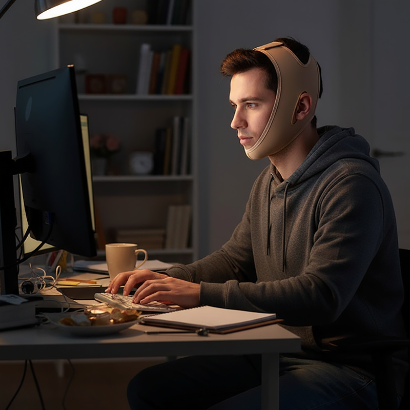 Oman profiilin tarkastelu voi joskus aiheuttaa epävarmuutta. Saavuta huomattavasti virtaviivaisempi ilme vaivattomasti ja kivuttomasti. Ortorex Face Slim Mask istuu tiiviisti ja mukavasti koko käyttökerran ajan. Käytä vain puoli tuntia ja huomaat näkyvän eron.