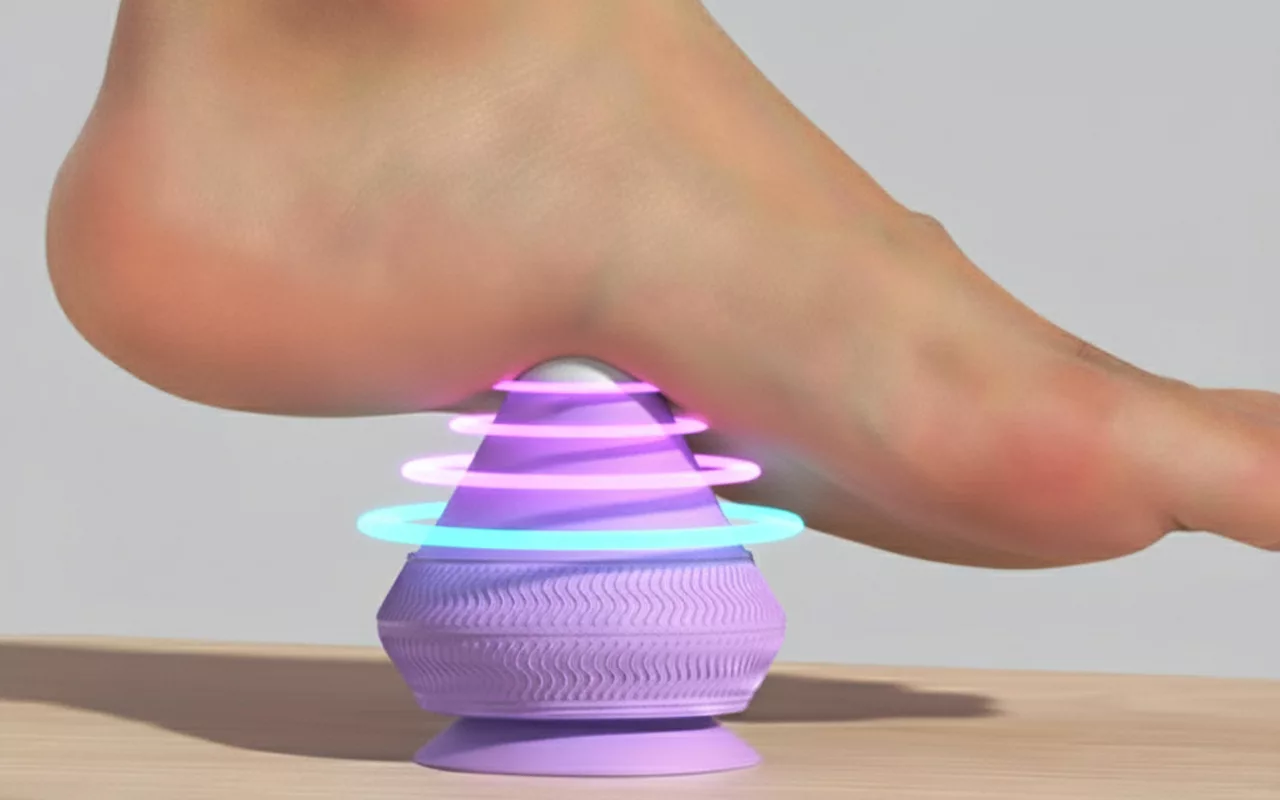 Lasten perässä juoksemisen jälkeen tällä pallolla jalkojen rullaaminen tekee suuren eron. Imukuppi pitää sen paikallaan sekä istuessa että seistessä.