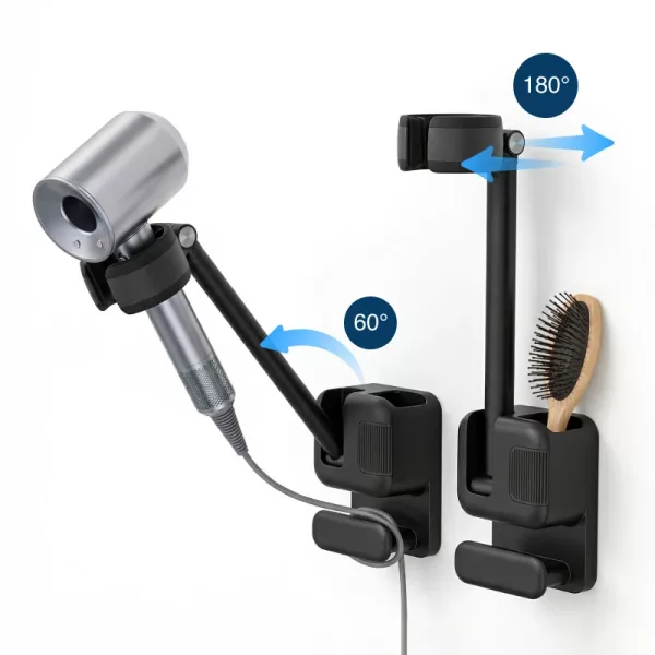 Nauti täydestä vapaudesta muotoillessasi tai kuivatessasi hiuksia nopeasti. Ei enää väsyneitä käsivarsia tai kiusallista tasapainoilua kiireisinä aamuina.