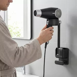 Ystävä suositteli tätä ja nyt ymmärrän miksi! Ei enää sekasotkua ja kuivain on aina käden ulottuvilla – kylpyhuoneeni näyttää paljon siistimmältä.