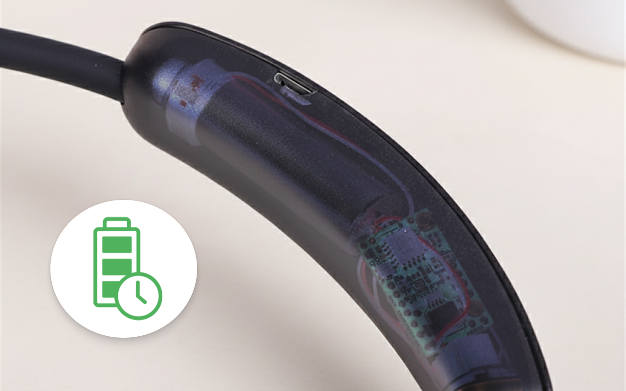 Pitkä akun kesto tarkoittaa, ettei tarvitse koko ajan ladata. Todella mukava käyttää tuntikausia kerralla.