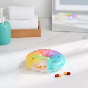 Pidä lääkkeesi järjestyksessä ja käyttövalmiina Ortorex-pillerirasialla. Se on kompakti, mutta tarpeeksi suuri viikon pillerimäärälle. Turvalliset kannet estävät pillerien leviämisen, vaikka olisit liikkeellä.