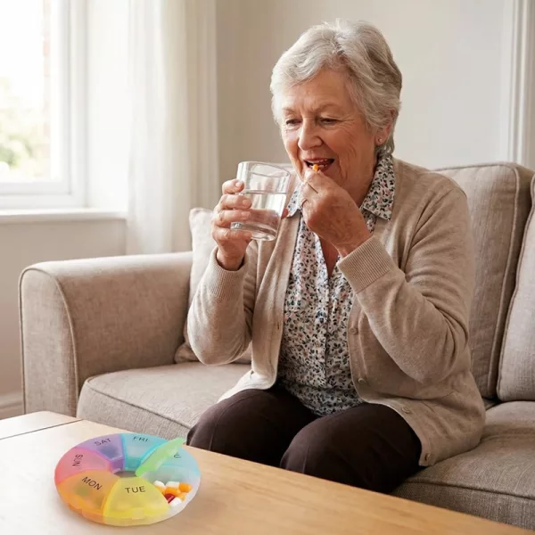 Kestävästä materiaalista valmistettu pillerijärjestäjämme kestää käytössä vuosia. Se on kertaluonteinen investointi terveydestä huolehtimiseen.