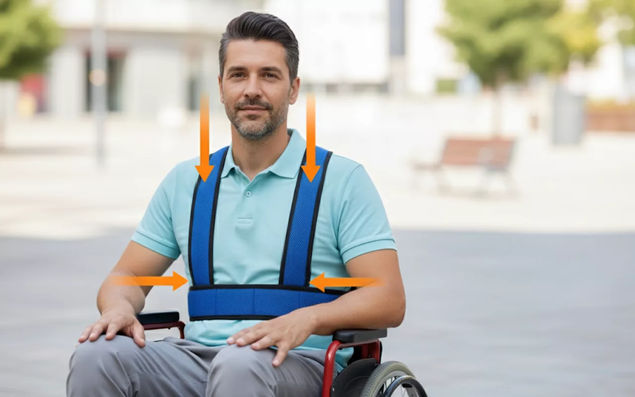 Jokainen ansaitsee mielenrauhan istuessaan tai liikkuessaan. Ortorex-pyörätuolin turvavyö tukee ylävartaloa hellästi. Kevyt verkkokangas antaa ihon hengittää ja pitää sen viileänä. Yksinkertaiset säädöt tekevät siitä sopivan kaikille vartalotyypeille ja -koolle.