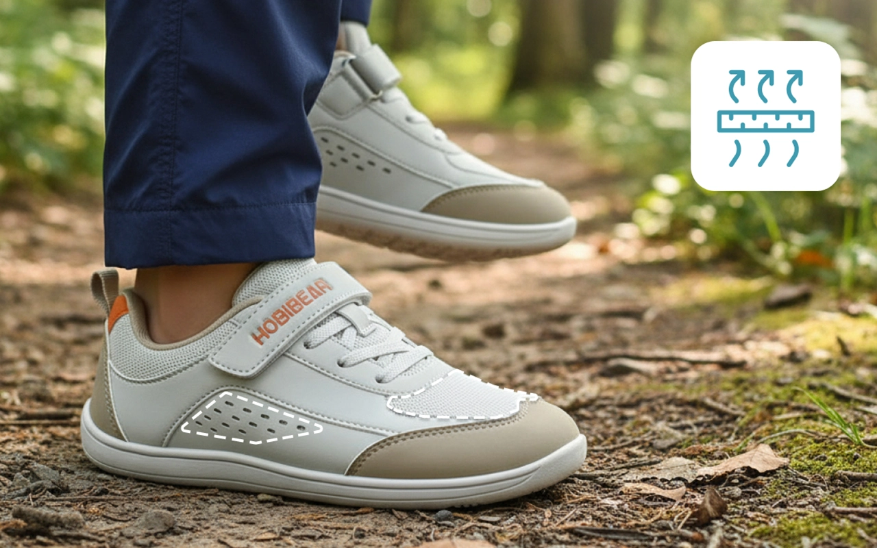 Lasten jalat pysyvät rentoina, sillä varpaat eivät puristu. Luonnollinen leviäminen parantaa tasapainoa ja mukavuutta kaikilla alustoilla.