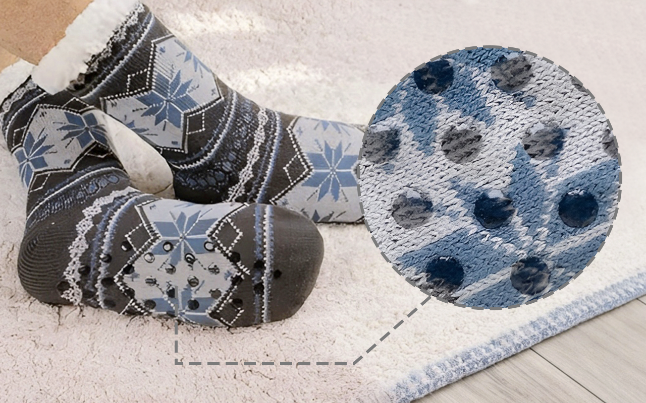 Ennen käytin tossuja, mutta nyt tarvitsen vain nämä sukat. Lämpimät, mukavat ja voin tanssia ympäriinsä turvallisesti!