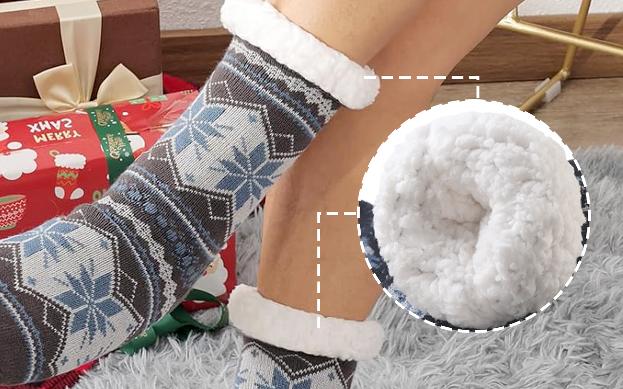 Nämä pörröiset sukat pitävät jalkani todella lämpiminä, jopa kylmimpinä öinä! Rakastan kävellä laattalattialla liukumatta ympäriinsä. Supermukavat!
