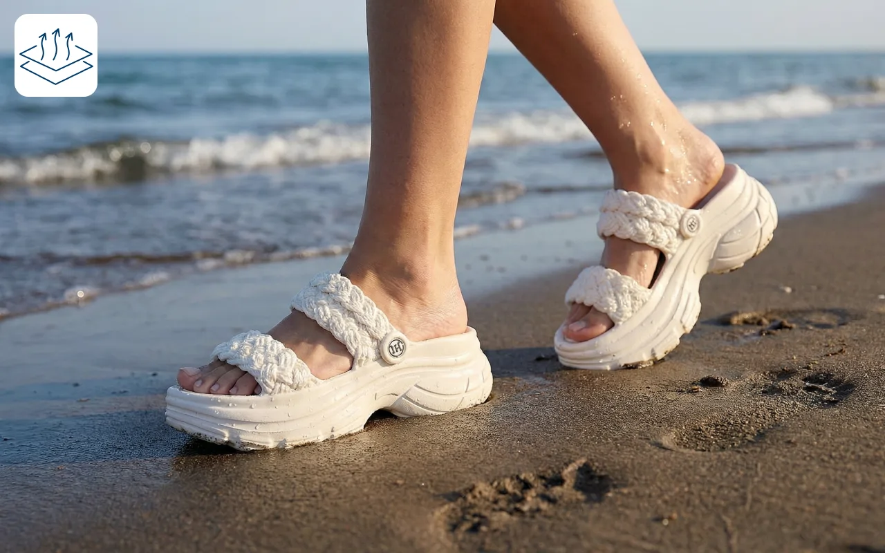Kosteus haihtuu nopeasti ja jalat pysyvät raikkaina kaikkialla. Pysy mukavana kävelylenkkien, asioinnin tai allasaikojen jälkeen.