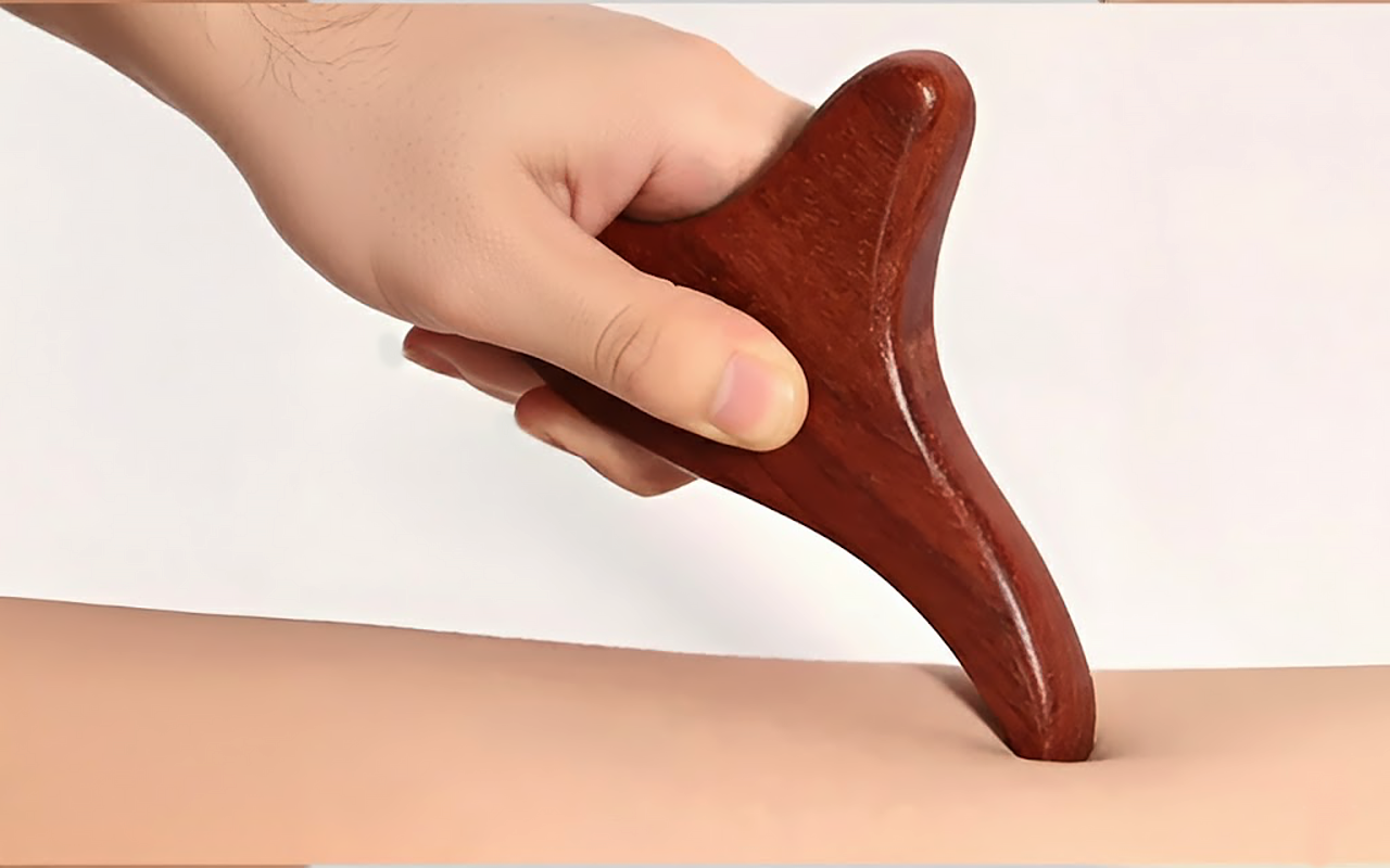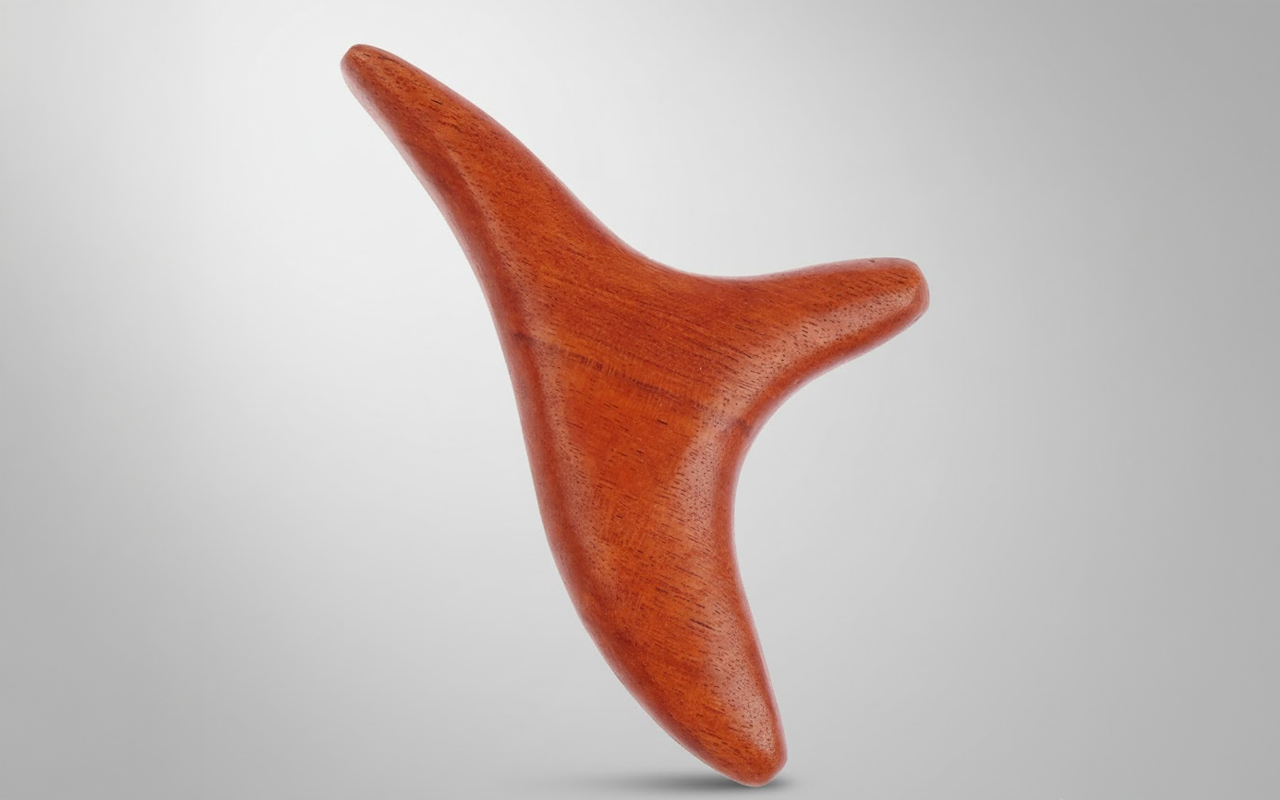 Sileästä puusta valmistettu työkalu tuntuu lempeältä iholla. Se tarjoaa turvallisen hierontakokemuksen ilman teräviä reunoja tai kovia muoveja.